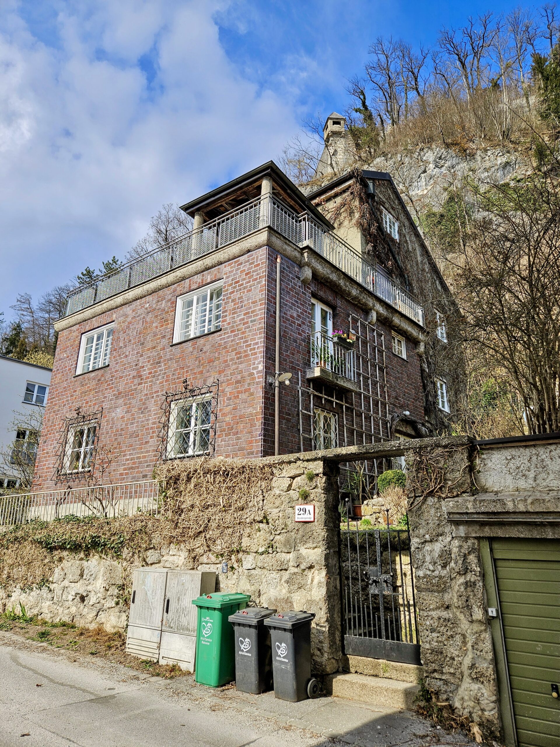 1 Wunibald Deininger’s buildings in Salzburg: the Kiesel publishing house, the Roittner gymnasium, the Wehrle sanatorium, the police barracks, the residential building at Arenbergstraße 29a (owned by Margarete Deininger), and municipal housing (Gemeindebau) on Plainstraße (formerly Hirschenwirtswiese).