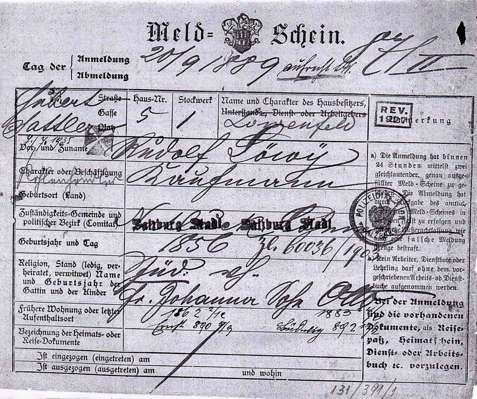 The local citizen registration records, the »Heimatmatrik«1, show that their sons Otto, Ernst and Ludwig LÖWY, graduates of the Realschule in Salzburg and officers in the Austro-Hungarian Army in the First World War, also started families.
