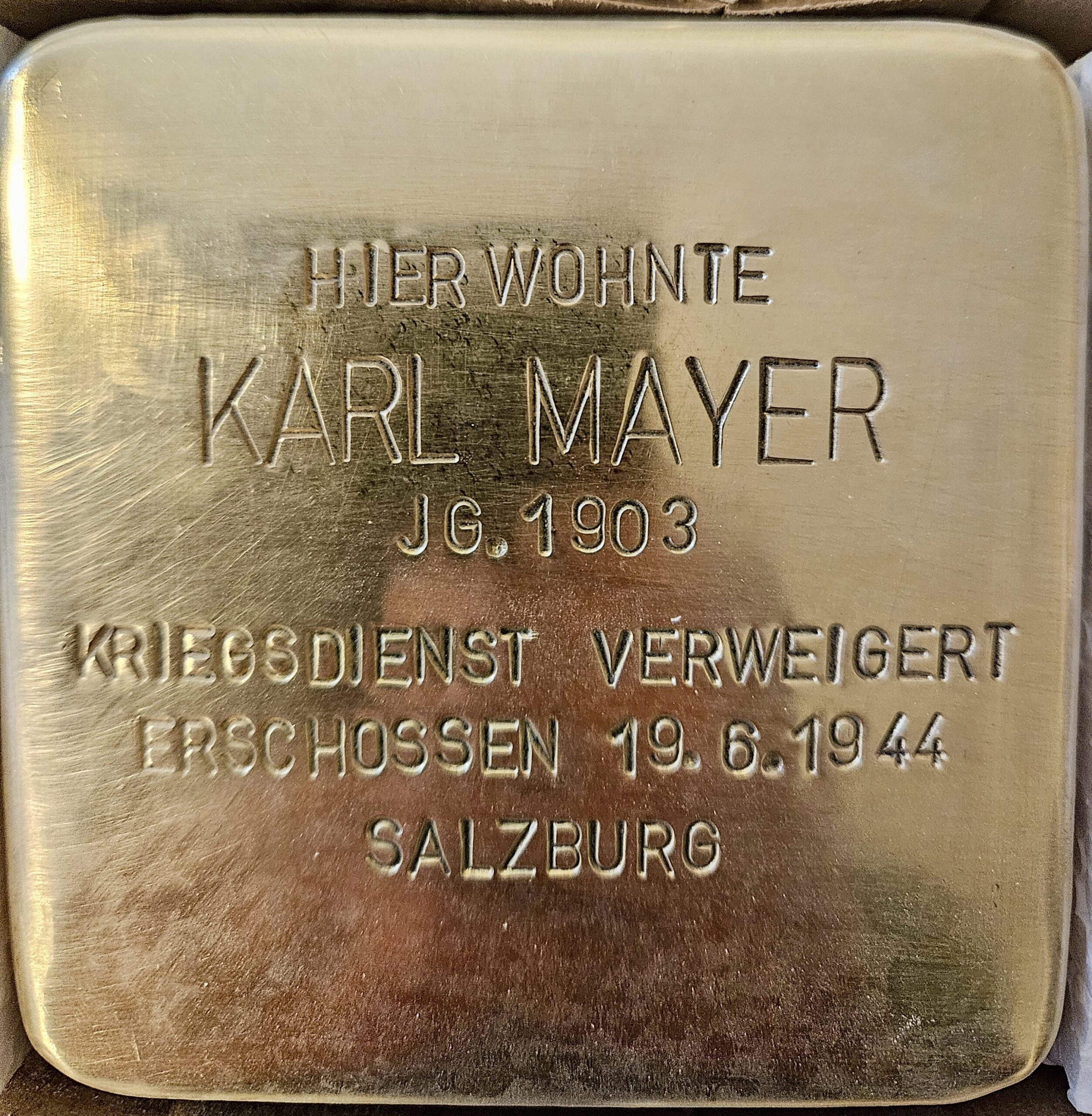 Karl MAYER is one of the Nazis’ victims who wasn’t counted in the 1991 publication Dokumentation Widerstand und Verfolgung in Salzburg 1934-1945, and doesn’t appear in the Online-Databank of the Documentation Archive of the Austrian Resistance.